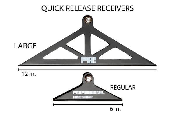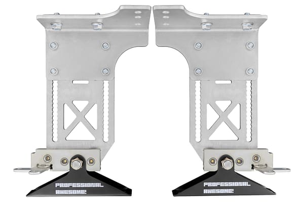 The Professional Awesome Quick Release Splitter Support System uses a latching mechanism to allow for quick mounting and dismounting of your splitter. The latches are designed to hold upwards of 700 lbs. each. They are strong enough to support some of the craziest splitters you can imagine. All that is needed is to add your own release handle and your quick release splitter dreams will be realized.